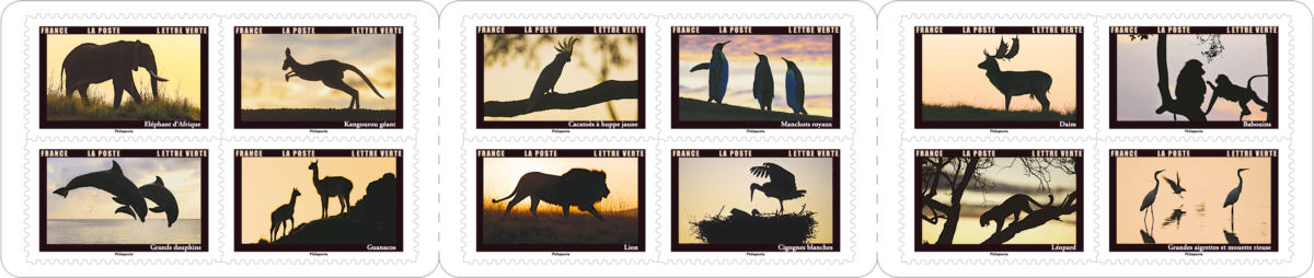 Naturagency), Cigognes blanches (© Jorge Sierra / Biosphoto), Léopard (© Michel & Christine Denis Huot / Biosphoto), Grandes aigrettes et mouette rieuse (© Pierre Huguet-Dubief / Biosphoto) (© La Poste/ C. Guénot)