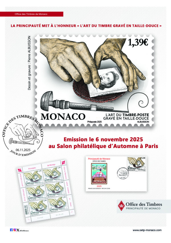 – Emission d’un timbre-poste de Monaco sur « l’art du timbre-poste gravé en taille-douce » Stand OETP de Monaco (F6)