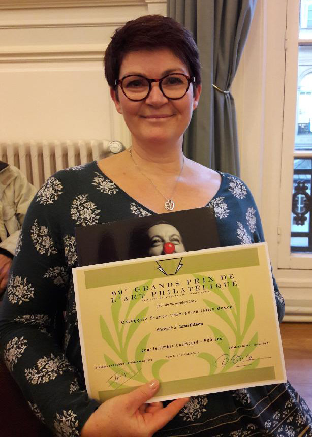 Line Filhon pour sa gravure du timbre « Chambord »