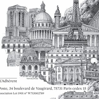 Le dessinateur Benjamin Van Blancke choisit de représenter Paris pour la 9ème carte d’adhérent illustrée. Paris, Musée de La Poste, est le siège social de l’association nationale Art du Timbre Gravé.L’illustration s’intitule « Paris, capitale des arts et de l’architecture ».