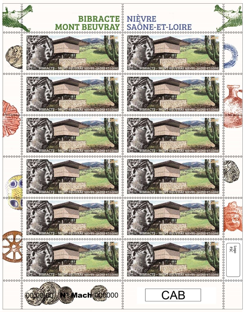 La Poste émet le 10 mai 2021 un timbre-poste de la série touristique sur Bibracte situé sur le mont Beuvray aux limites de la Nièvre et de la Saône-et-Loire (Grand site de France depuis 2007).