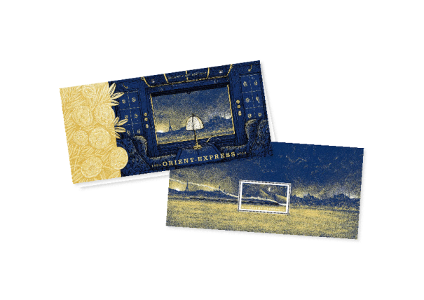 La Poste émet le 2 octobre un bloc feuillet d’un timbre à l’occasion des 140 ans du voyage inaugural de l’Orient Express Paris – Constantinople. Broll et Prascida signe cette création pour ce train mythique.