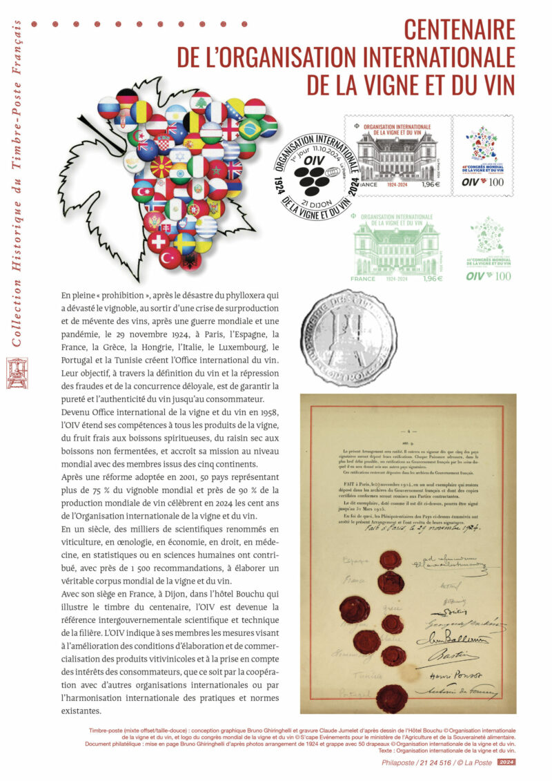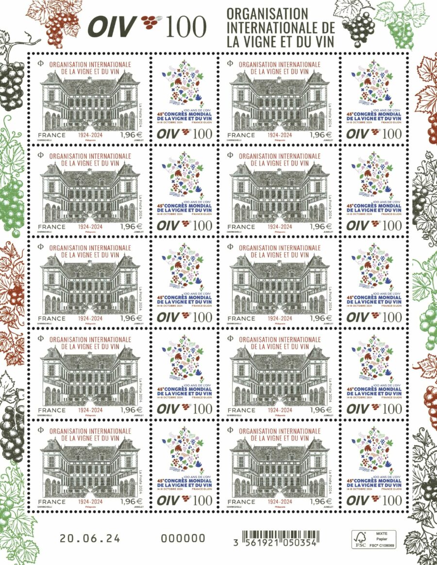 La Poste émet un timbre gravé pour le centenaire de l’Organisation internationale de la vigne et du vin.