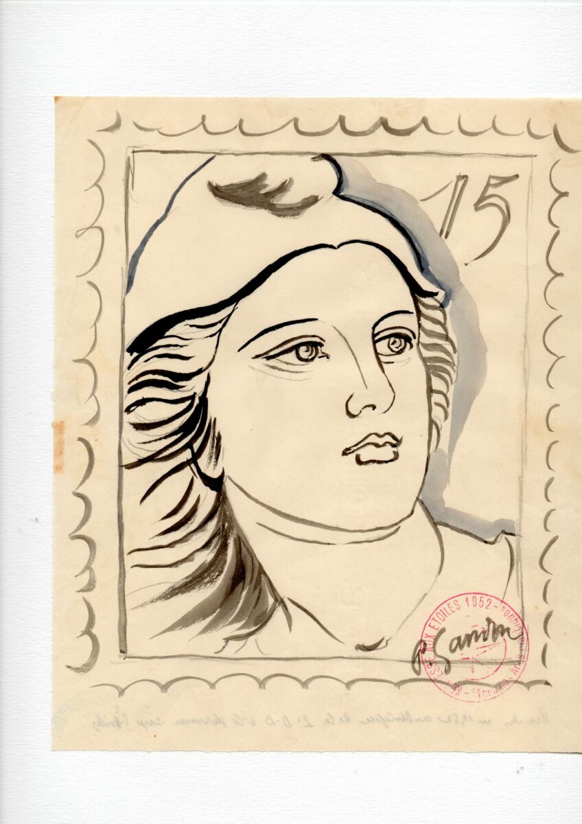 Marianne de Béquet, projet non émis, gouache sur carton, © C. de La Patellière
