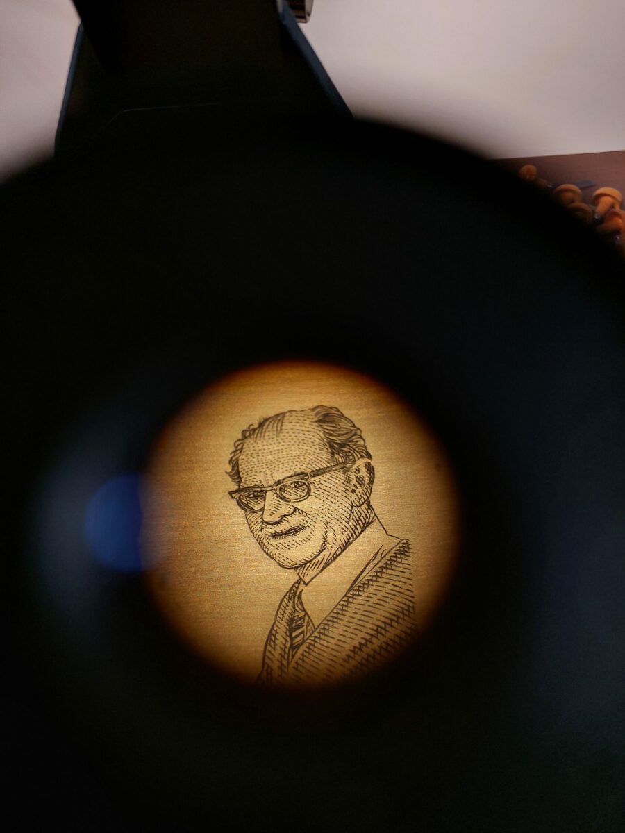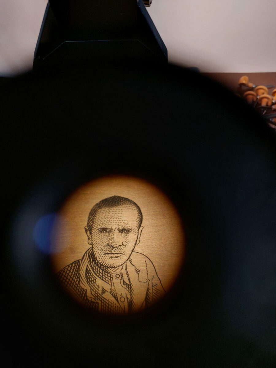 Il a été demandé à Elsa Catelin de regrouper les trois portraits des photographes, avec en arrière-plan leur atelier ou une photo emblématique de leur réalisation. La photo de la principauté choisie, figurait parmi celles fournies à l’artiste.