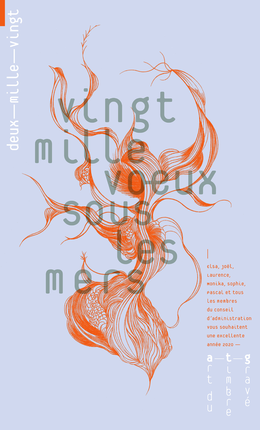 Après Sophie Beaujard en 2017, Jean-Jacques Mahuteau en 2018, Christelle Guénot en 2019, c’est Sylvie Patte et Tanguy Besset qui ont réalisé pour l’ATG cette illustration des vœux 2020 :