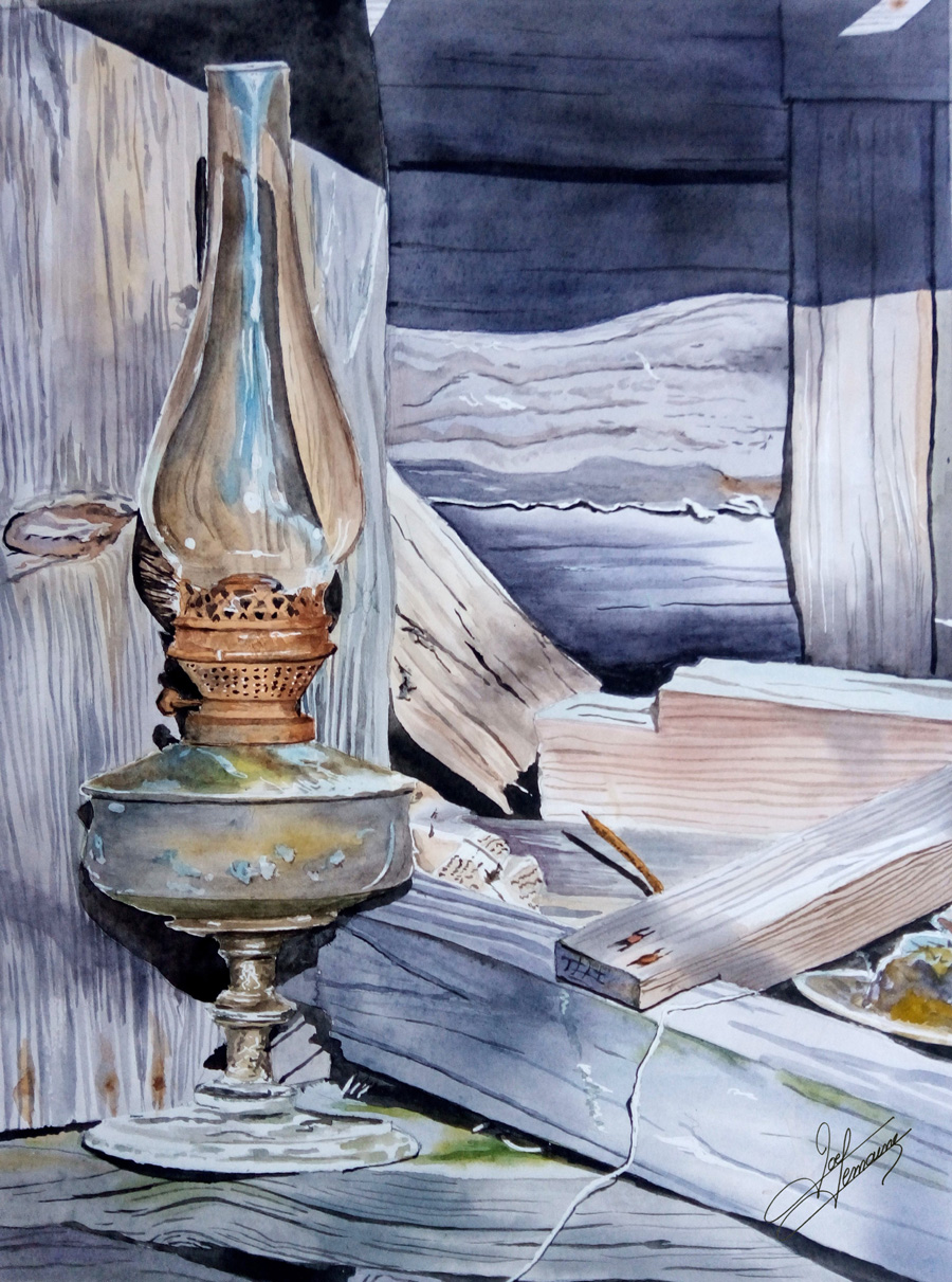 Joël Lemaine, Lampe oubliée, aquarelle (© J. Lemaine)