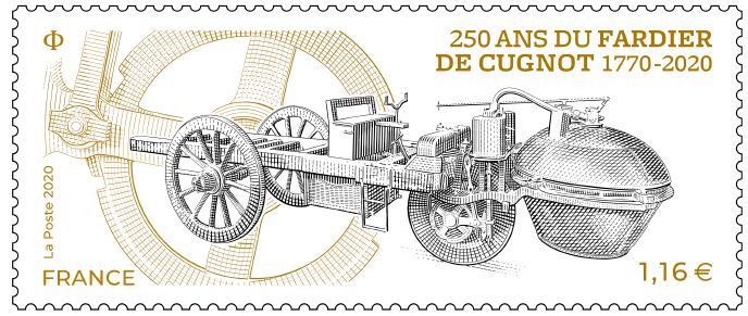 A l’occasion des 250 ans du fardier de l’ingénieur militaire Cugnot (ancêtre de l’automobile), La Poste a émis un timbre en octobre 2020 sur cet engin à deux roues arrière, un moteur à deux cylindres à haute pression au-dessus de la roue avant et une chaudière. Ce véhicule est conservé au musée des arts et métiers à Paris. Le timbre est dessiné et gravé en taille-douce par Sarah Lazarevic.