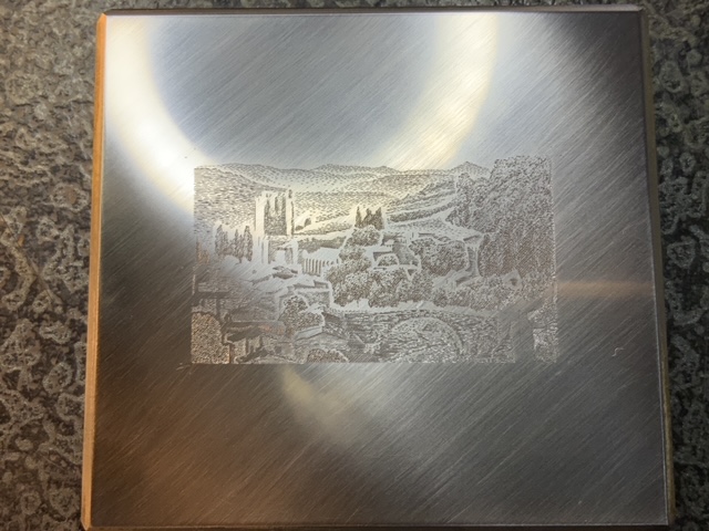 Au sujet des couleurs, Lagrasse est représenté en été avec des couleurs chaudes. Nous avons du brun, de l’orange et du vert sapin en taille directe, du beige et du vert en report.