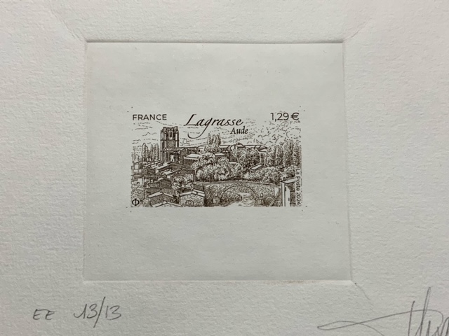 Le 2 novembre, La Poste émettra en premier jour le timbre Lagrasse, dessiné et gravé par Line Filhon. L’artiste animera une séance de dédicace le 2 novembre au Carré d’Encre de 10h30 à 12h30