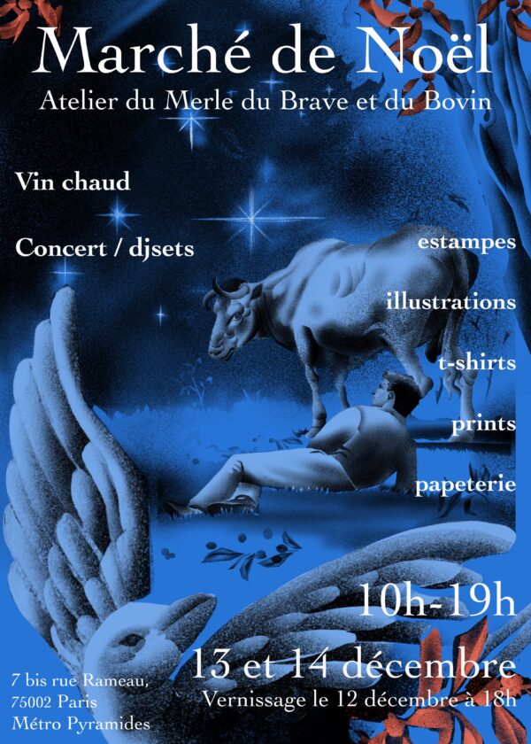 L’atelier de gravure du Merle, du Brave et du Bovin (Louis Genty, François Feydy et Nicolas Bical) ouvre ses portes à son traditionnel Marché de Noël, du 12 au 14 décembre 2025.