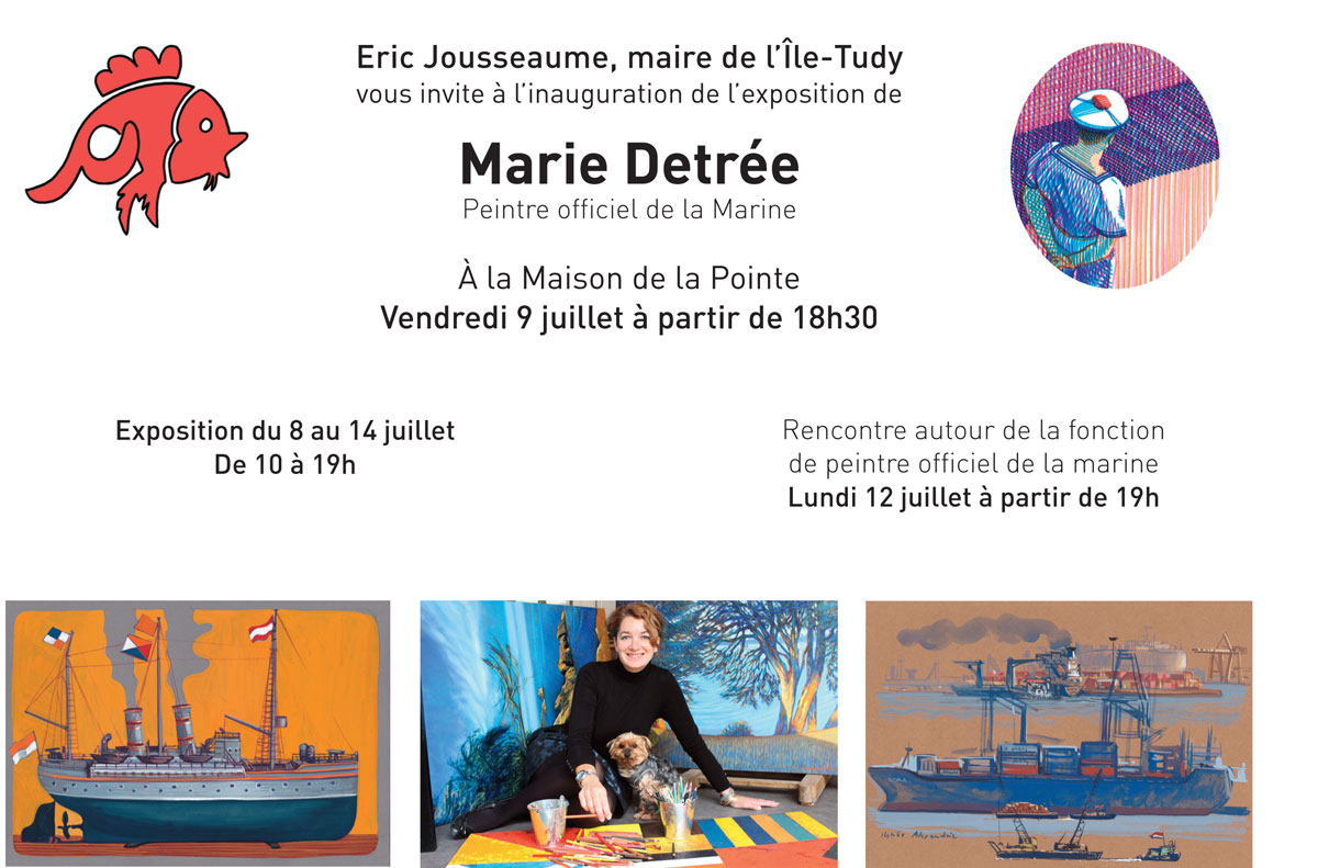 Cette exposition est ouverte du 8 au 14 juillet de 10 h à 19 h. Le lundi 12 juillet, 19 h, une rencontre est prévue avec Marie Détrée autour de la fonction de peintre officiel de la Marine.