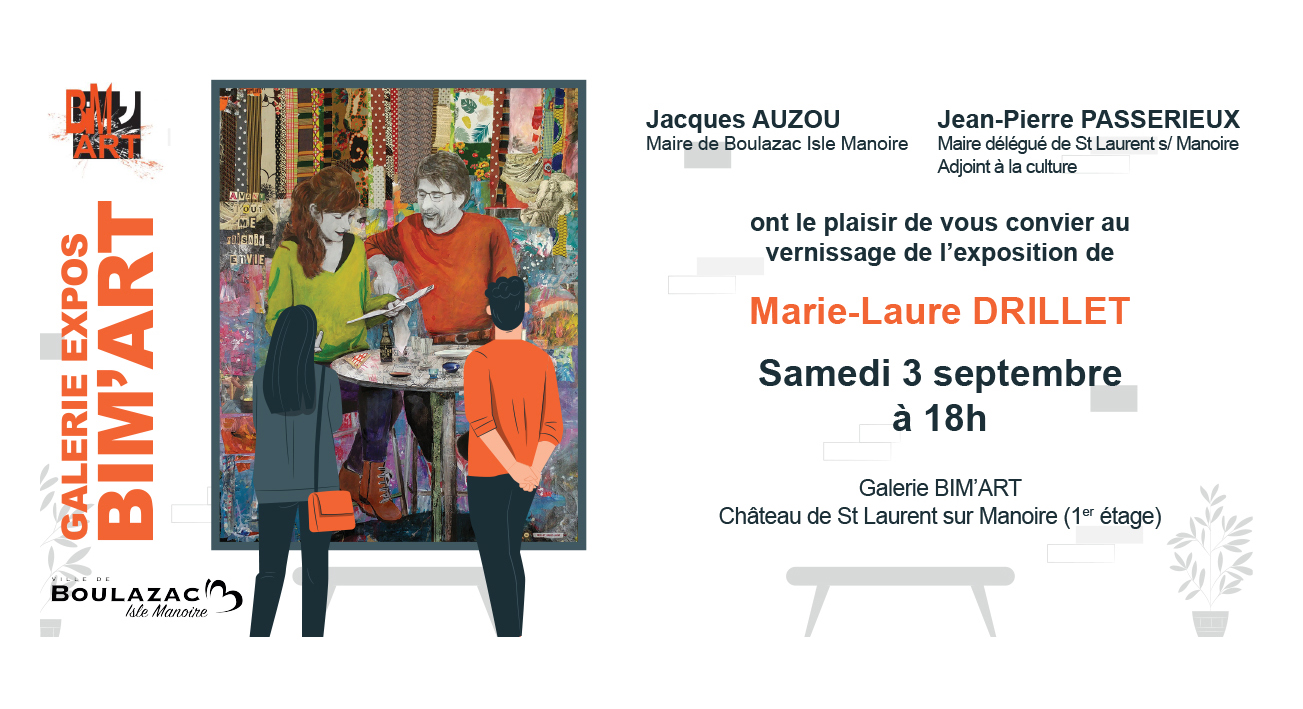 Carton d’Invitation à l’exposition des œuvres de Marie-Laure Drillet, château de Saint-Laurent sur Manoire, Dordogne (© ML. Drillet)