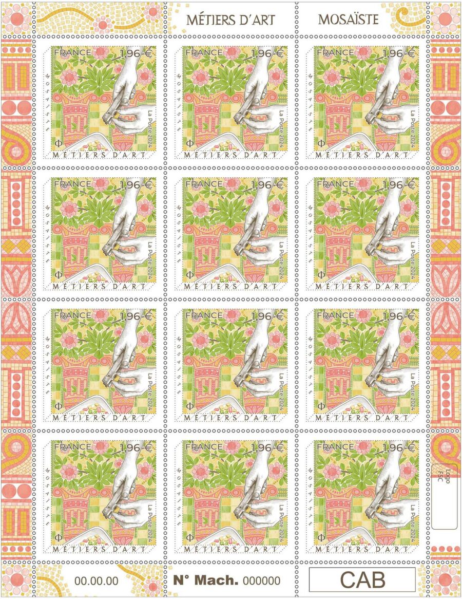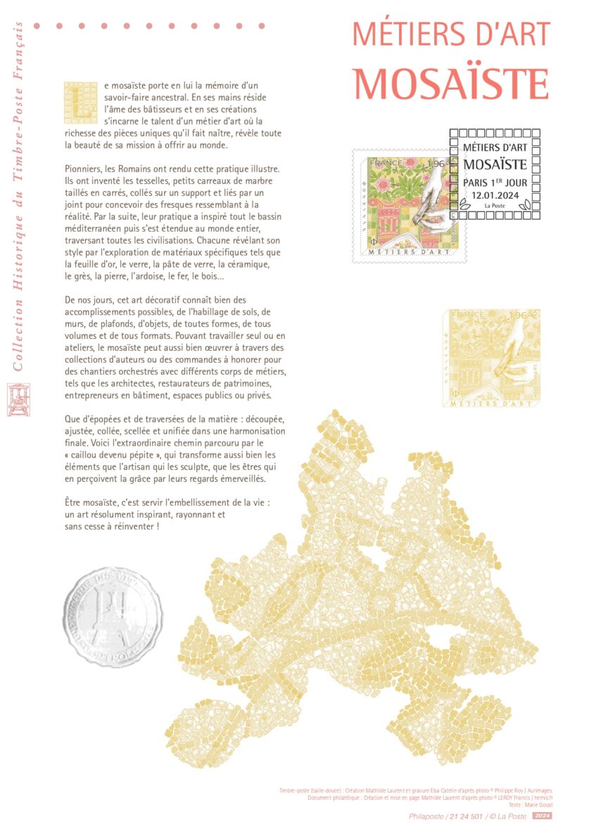 Le timbre mosaïste de la série métiers d’art, inaugure les timbres français en taille-douce de l’année 2024.