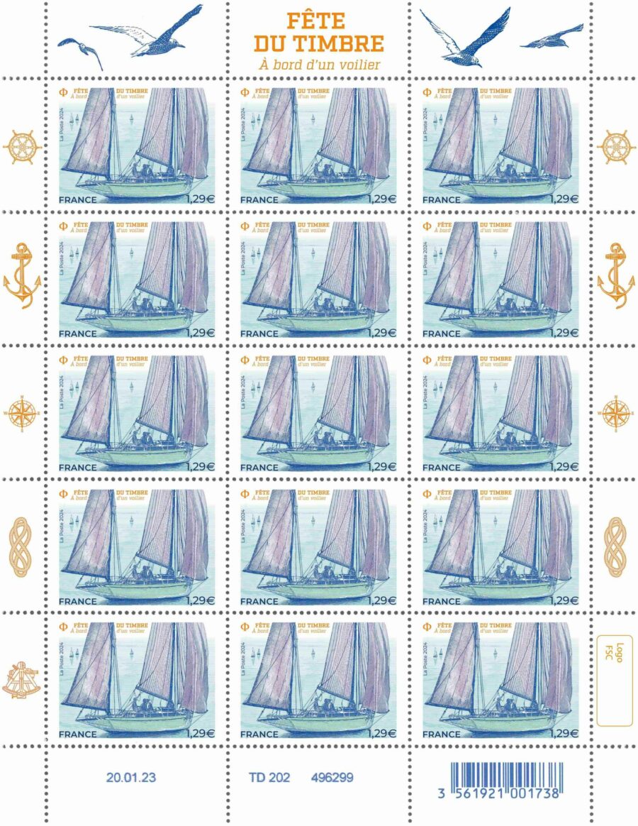 Après la danse de 2014 à 2017 et les automobiles françaises de 2018 à 2021, les moyens de transports figurent sur les timbres « fête du timbre » depuis 2022. Le voilier cette année succède au TER et au vélo.