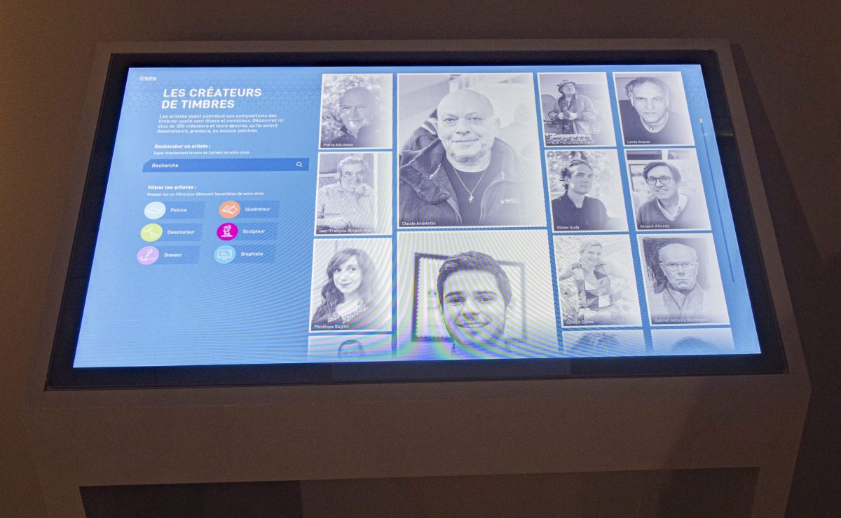 La salle de consultation du centre de ressources peut accueillir jusqu’à 4 personnes, et actuellement deux personnes en raison du contexte sanitaire. Un poste informatique qui donne accès aux différents catalogues des collections, à internet et à Gallica (Lien vers les 16 périodiques philatéliques anciens numérisés dans Gallica), ainsi qu’une borne interactive sur les artistes dessinateurs et graveurs de timbres-poste sont en accès libre.