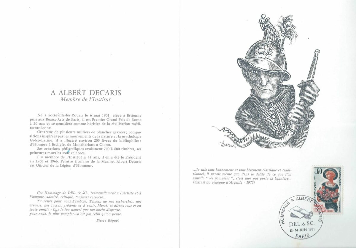 Hommage à Albert Decaris, livret souvenir, association Del. & Sculp., juin 1981 (© Del. & Sculp. / A. Decaris, coll. ATG)