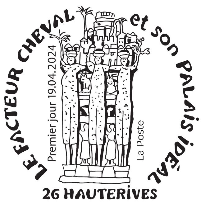 Les 19 et 20 avril 2024, sera émis en premier jour le bloc centenaire de la disparition du Facteur Cheval, dessiné et gravé par Sophie Beaujard. L’artiste animera une séance de dédicaces les 19 et 20 avril de 10h à 12h et de 15h à 17h au palais du Facteur Cheval à Hauterives.