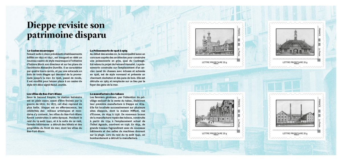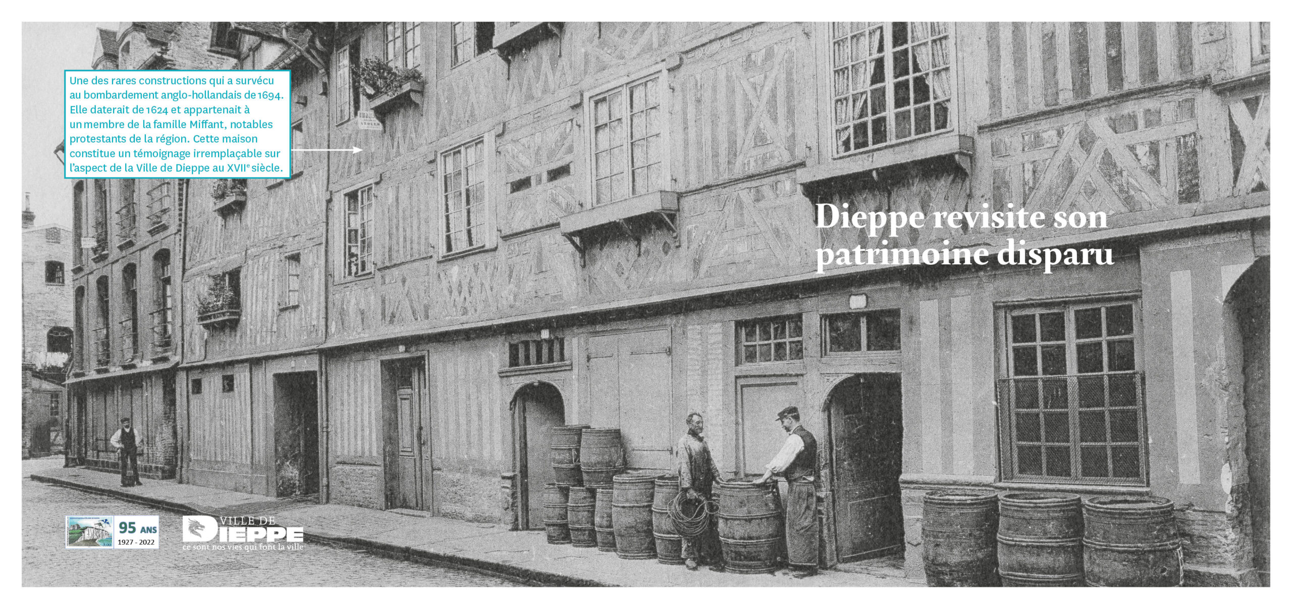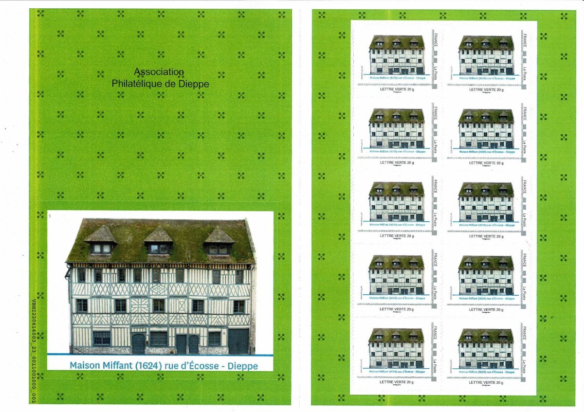 L’association philatélique de Dieppe poursuit la valorisation de son patrimoine, notamment par la Maison Miffant de 1624 (façade en pan de bois sauvée de l’incendie provoqué par le bombardement de la flotte anglo-hollandaise de juillet 1694).