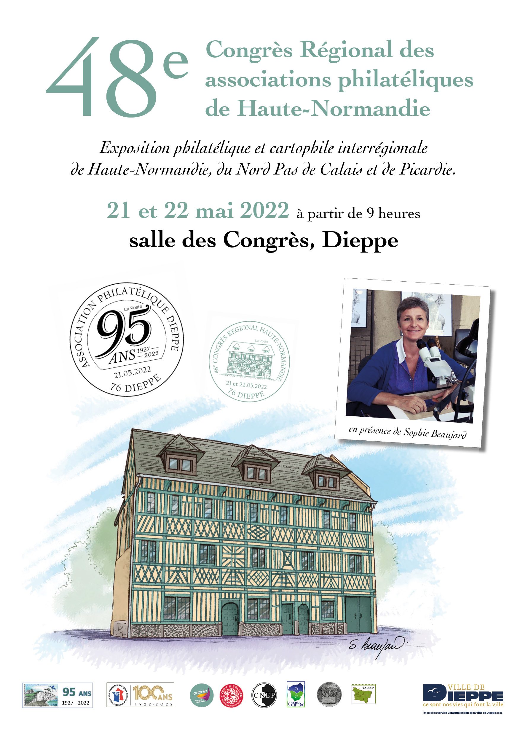 A l’occasion du 48ème congrès régional des associations philatéliques de Haute-Normandie, l’association philatélique de Dieppe organise l’exposition philatélique et ses animations les samedi 21 mai et dimanche 22 mai 2022.
